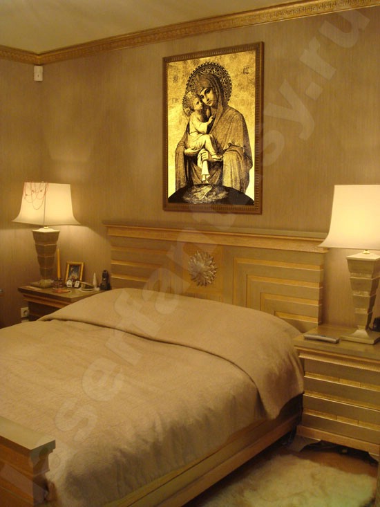 Картина-икона. Гравировка по стеклу с нанесением сусального золота 960 пробы (24 карата).
