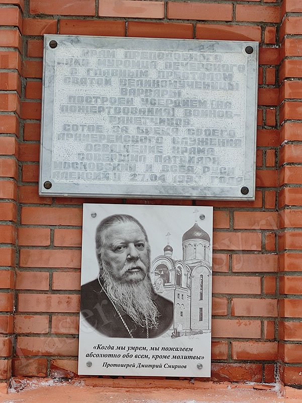 Мемориальная доска из керамогранита под мрамор 480х620х10мм Протоиерею Дмитрию Смирнову-первому настоятелю Храма вмц.Варвары и прп.Илии Муромца в пос.Власиха МО