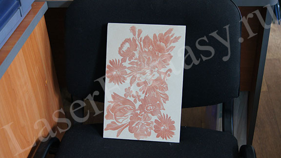 Лазерная гравировка с последующим нанесением краски на белый мрамор и черный гранит.
