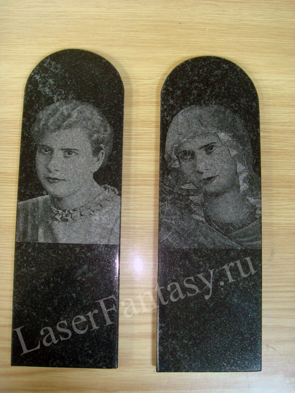 Лазерная гравировка на натуральном камне: гранит, мрамор и т.д. Качество изображения фотографическое.