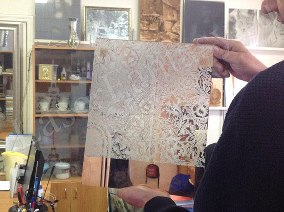 Лазерная гравировка в цвете на зеркалах для интерьера спальни.